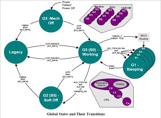 ACPI는 OS가 중심이 되어서 각 장치의 동작 상태등을 일괄적으로 관리하고 전력을 제어하는 인터페이스인 것입니다.