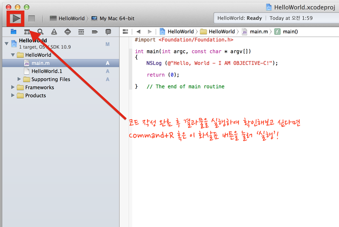 Xcode로 Hello World 출력해보기 [Objective-C]