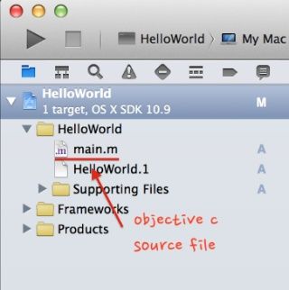 5. 왼쪽 스테이터스 바에 main.m 등과 함께 프로젝트 파일의 구조, Hierarchy를 확인할 수 있습니다.